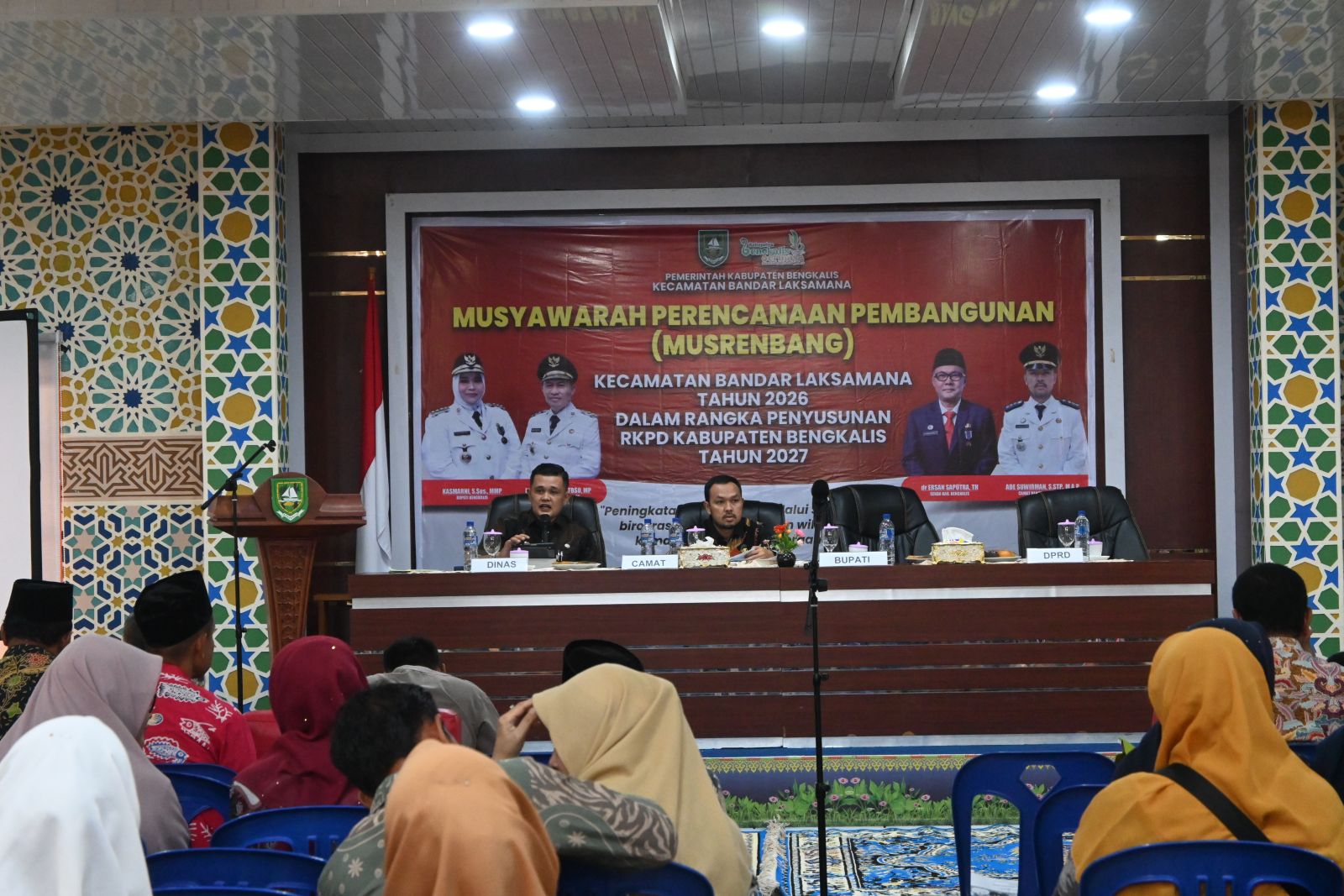 Musrenbang Kecamatan Bandar Laksamana dihadiri seluruh kepala desa dan ketua BPD se-kecamatan, perwakilan sejumlah OPD, serta Tim Percepatan Pembangunan yaitu H. Yuhelmi, H. Mustafa Kamal, dan H. Suparjo, beserta undangan lainnya.